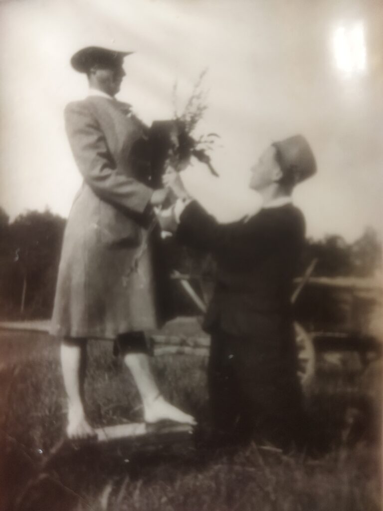 Kiedy zapytam Arka: “jak to się stało, że się w Lusi zakochałeś?” – jej już z nami będzie, po pół wieku wspólnego życia, po tym jak towarzyszył jej i opiekował się nią do samego końca, powie: “wiesz, to było od razu, kiedy ją poznałem, wiedziałem, że to ona” – wtedy latem 46’ roku w domu Łapuchowskich. We wrześniu 1946 wyślę jej już zdjęcie z wojska “Lusi, na pamiątkę od rekruta Arka”. Czy myślał wtedy o swoich rodzicach i jakie ich miłość w związku z tym napotka przeszkody? Wątpię. Raczej było w tym coś kompletnie nieracjonalnego, wręcz atawistycznego, może po prostu przypominała mu matkę.